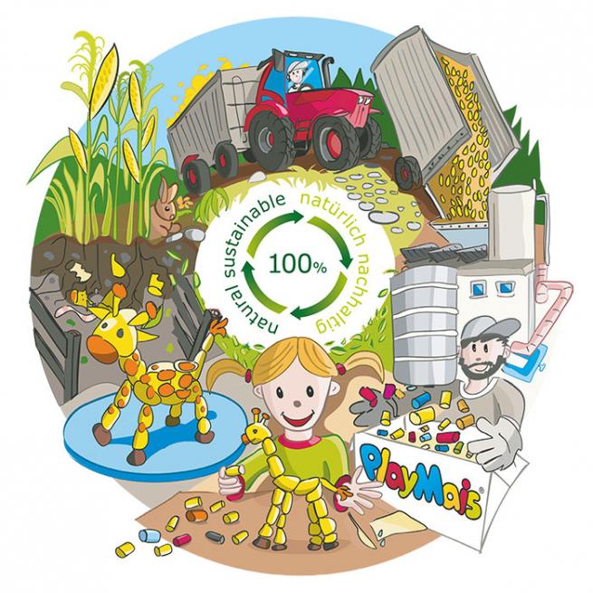 PlayMais® wird auf der Basis von Maisgrieß sowie Wasser hergestellt und mit Lebensmittelfarbe gefärbt. Aufgrund der enthaltenen Stärke haften die einzelnen Sticks mit Wasser aneinander: Einfach leicht anfeuchten und an andere Sticks drücken. Ihre Kinder spielen mit einem 100 % biologisch abbaubaren Produkt. PlayMais® ist umweltfreundlich, frei von Schadstoffen und Made in Germany.