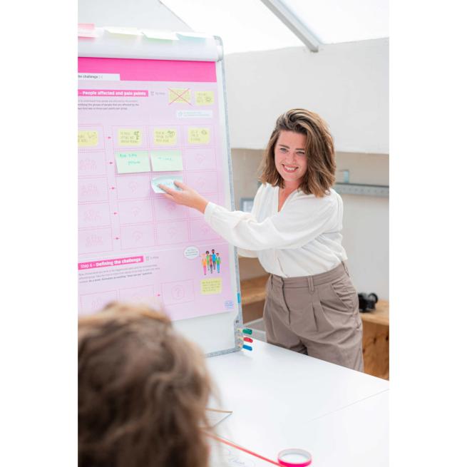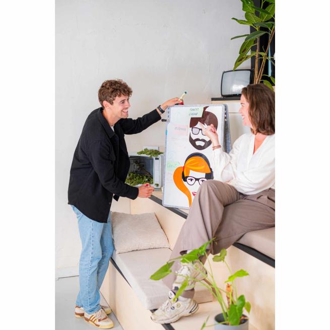 Mit dem PLAYROOM PLAYBOARD Whiteboard bringen Sie Inhalte schnell auf Augenhöhe. Das Board nutzen Sie z. B. auf dem Tisch frei in der Hand oder an der Wand. Drehen Sie es, wie es brauchen ins Hoch- oder Querformat und starten Sie direkt. Schreiben Sie Arbeitsaufträge, sammeln Sie Ideen im Brainstorming oder notieren Sie Ergebnisse aus Gruppenphasen. Die emaillierte, magnethaftende Schreibfläche nimmt Markertext sauber auf und hält Karten, Zettel und Feedback-Punkte mit Magneten (nicht enthalten) genau dort, wo sie hingehören. Der filzähnliche Rahmen aus recyceltem PET-Kunststoff macht das Board leicht und robust – ideal für Raumwechsel, Projektarbeit und Workshops. Nutzen Sie das PLAYBOARD Whiteboard auch als Aufgabentafel oder Moderationsfläche.