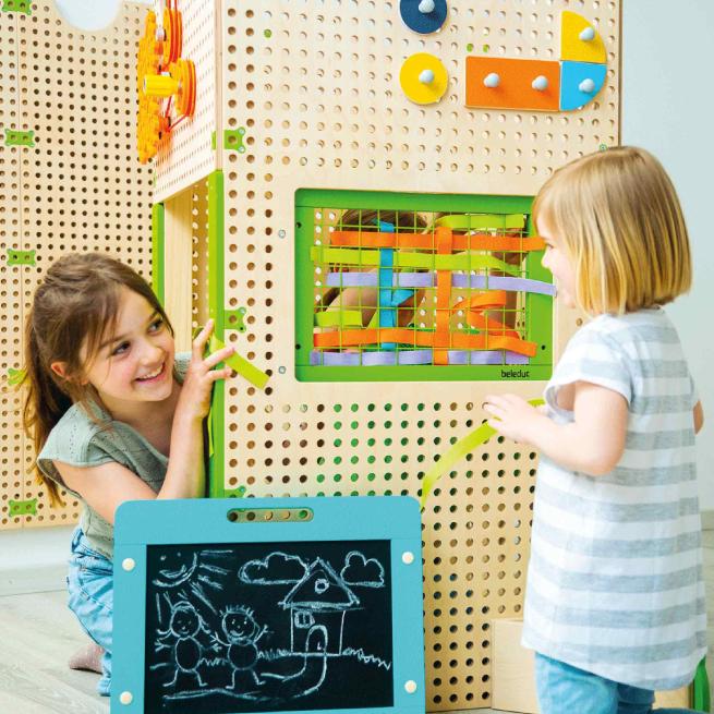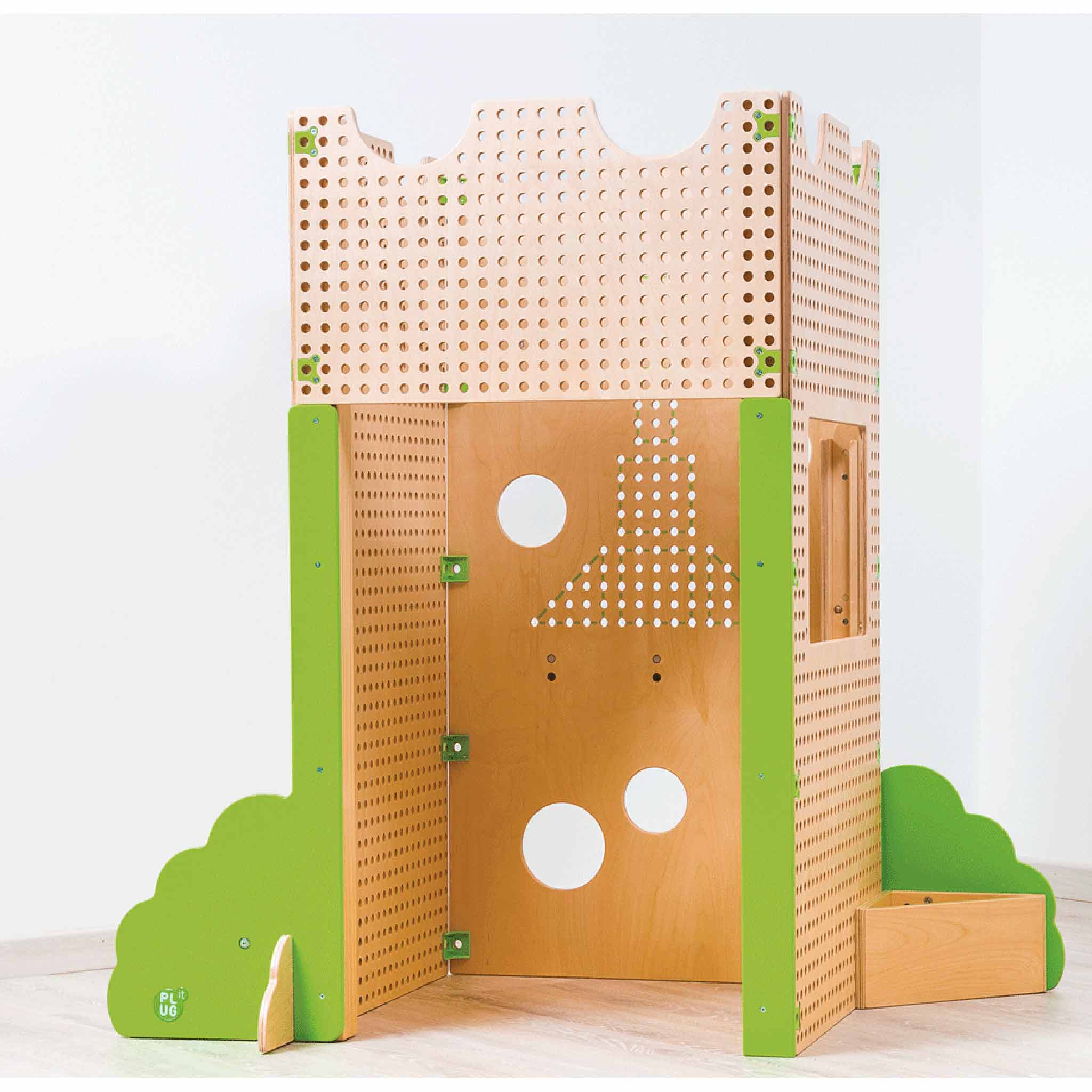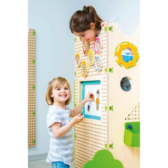 Das Activity Spielhaus aus der PLUG it-Serie schenkt Kindern reichlich Raum für kreatives Entfalten. Es verfügt über tolle Lichtelemente, eine Murmelbahn sowie einen Rahmen, der für Spiegelelemente, Web-Experimente und vieles mehr Platz bietet. Diese Vielfalt garantiert abwechslungsreichen Spielspaß. Die einzelnen Spielmodule sind flexibel und können immer wieder neu arrangiert werden; sie sind separat erhältlich. Dadurch lässt sich das Spielhaus täglich neu erfinden. Zudem ist das Activity Haus von allen vier Seiten bespielbar, was zusätzliche Möglichkeiten eröffnet.