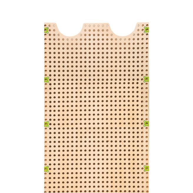 Die Basisplatte von PLUG it by beleduc ermöglicht es, eine eigene PLUG it-Wand zu gestalten oder ein vorhandenes PLUG it-Wandsystem zu erweitern. Alle Spielelemente, die zum Wandsystem gehören, können auch an dieser einzelnen Wand verwendet werden.