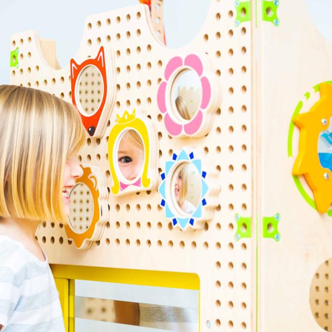 Ausprobieren, stecken und spielen – mithilfe der Produktlinie PLUG it trainieren Kindergarten- und Schulkinder ihre motorischen Fähigkeiten und ihre Vorstellungskraft. Das offene Spielkonzept basiert auf dem Prinzip einer Lochplatte, die mit unterschiedlichen Elementen wie Plugs, Taschen, themenbezogenen Sets, Spiegeln und Spielen immer neue (Lern-)Möglichkeiten schafft. Dabei spricht das Konzept gleichzeitig unterschiedliche Altersklassen an und deckt verschiedene kindliche Entwicklungsstufen ab. Das Activity-Spielhaus-Set ist die optimale Ergänzung zu den einzelnen Sets. Die Materialien der PLUG-it-Produktlinie fühlen sich angenehm an und begeistern Große sowie Kleine. Erleben Sie und Ihre Kinder mit den Komponenten von PLUG it ein individuelles Spiel- und Lernerlebnis.