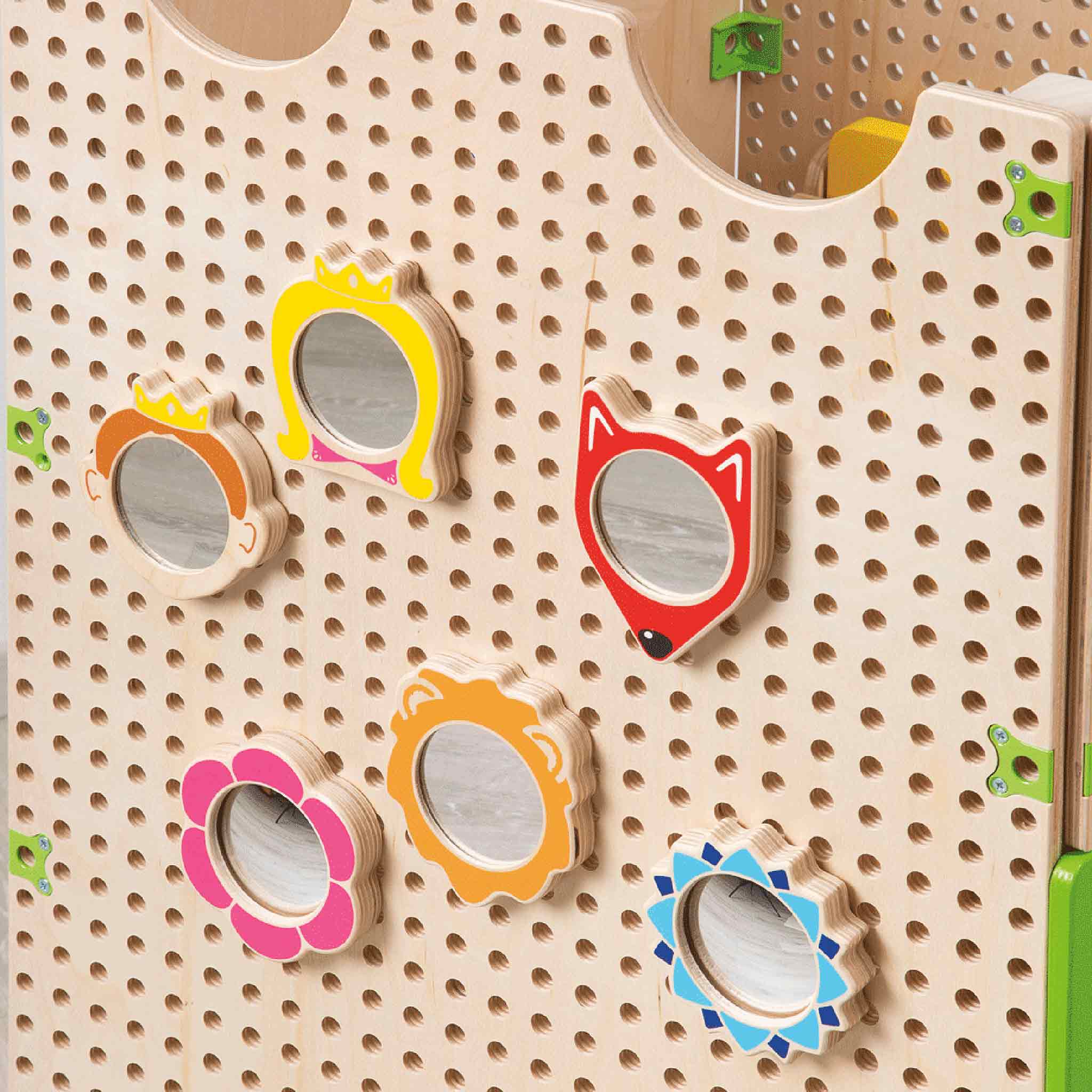 Spielerische Experimente und das Spielen mit Spiegelbildern sind immer wieder faszinierend! Kinder können dabei in die Rollen von Prinzen, Prinzessinnen, Füchsen oder Löwen schlüpfen. Spiegel haben eine magische Anziehungskraft und ergänzen die PLUG it Linie hervorragend. Dieses Set enthält sechs Spiegel in unterschiedlichen Formen. Mithilfe der verschiedenen Motive tauchen die Kinder in die Welt der Charaktere ein, und ihrer Fantasie sind im freien Rollenspiel keine Grenzen gesetzt. Ohne Basis-Platte, bitte separat bestellen.
