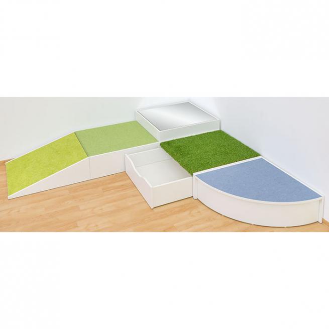Tipp: Sie erhalten das Set wie abgebildet. Ergänzen Sie es durch weitere Spielpodeste ganz nach Ihren Vorstellungen. Entdecken Sie als Holzbaustein-Alternative beispielsweise die Soft-Bausteine. „Spiegelfreundlich“ sind z. B. auch Bausteine aus Kork oder Filz – entdecken Sie unsere Kategorie Bausteine.