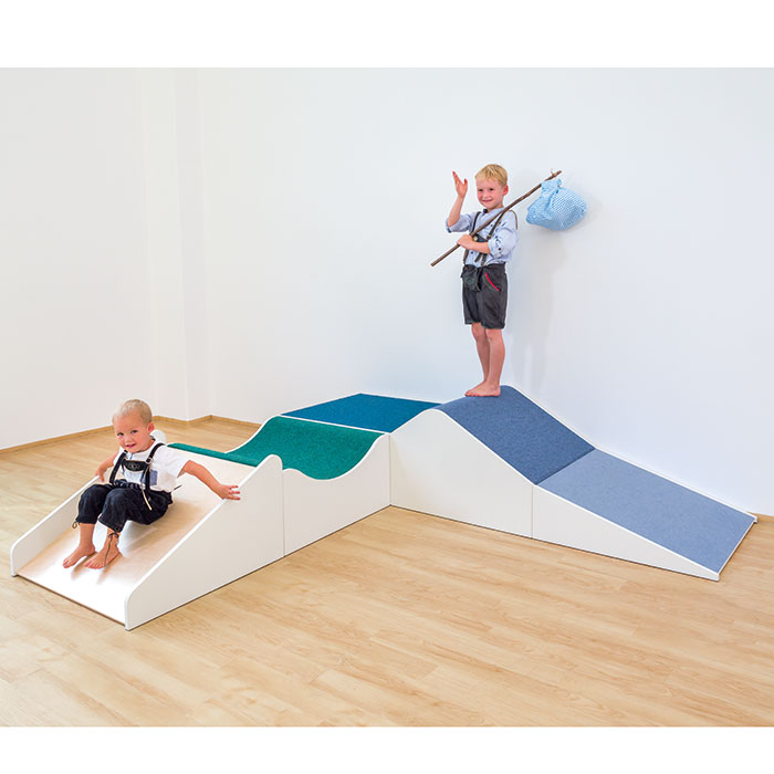 Rampe, Hügel, Podest, Senke und Rutsche, – das 5-teilige Set Clemens bietet Ihren Kindern einiges an Abwechslung beim bewegten Spielen.