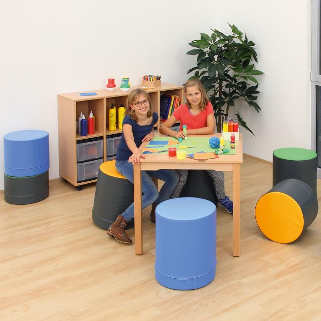 Das Sitzen in verschiedenen Haltungen stärkt die Rückenmuskulatur und fördert die Konzentrationsfähigkeit Ihrer Kinder. Die Allrounder bringen Schwung in Ihre Räumlichkeiten. Die bunten Polsterhocker sind feucht abwaschbar und äußerst leicht zu reinigen. Dank formstabilem, bis 30 kg belastbarem Schaumstoffkern und extra beschichtetem Bezug sind die Kinder-Polsterhocker besonders langlebig.