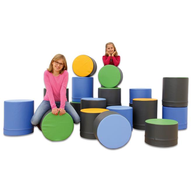 Sie möchten Ihren Aufenthaltsraum mit bequemen Kinder-Sitzmöbeln ausstatten, die attraktiv, flexibel, standfest, strapazierfähig und kinderleicht zu transportieren sind? Hier ist die genial einfache Lösung! Die Rundpolster aus robustem Kunstleder vereinen all diese Vorzüge. Zudem lassen sich die Polster als Hocker hochkant oder als Sitzrolle äußerst variabel nutzen.