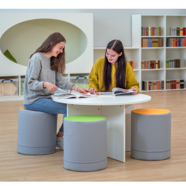 Sie möchten Ihren Aufenthaltsraum mit bequemen Sitzmöbeln ausstatten, die attraktiv, flexibel, standfest, strapazierfähig und kinderleicht zu transportieren sind? Hier ist die genial einfache Lösung! Die Rundpolster aus robustem Kunstleder vereinen all diese Vorzüge. Zudem lassen sich die Polster als Hocker hochkant oder als Sitzrolle äußerst variabel nutzen. Das Sitzen in verschiedenen Haltungen stärkt die Rückenmuskulatur und fördert die Konzentrationsfähigkeit Ihrer Schüler. Die Allrounder bringen Schwung in den Aufenthaltsraum! Belastbar bis 30 kg.