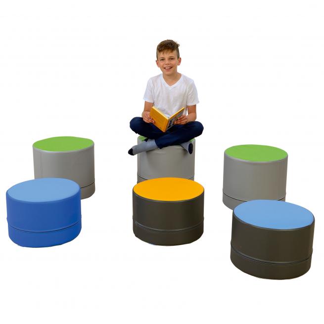Sie möchten Ihren Aufenthaltsraum mit bequemen Sitzmöbeln ausstatten, die attraktiv, flexibel, standfest, strapazierfähig und kinderleicht zu transportieren sind? Hier ist die genial einfache Lösung! Die Rundpolster aus robustem Kunstleder vereinen all diese Vorzüge. Zudem lassen sich die Polster als Hocker hochkant oder als Sitzrolle äußerst variabel nutzen. Das Sitzen in verschiedenen Haltungen stärkt die Rückenmuskulatur und fördert die Konzentrationsfähigkeit Ihrer Schüler. Die Allrounder bringen Schwung in den Aufenthaltsraum! Belastbar bis 30 kg.
