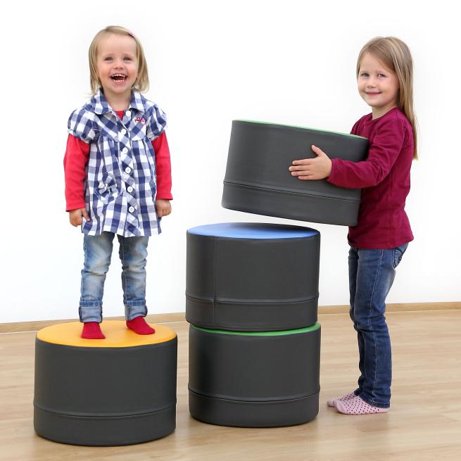 Sie möchten Ihren Aufenthaltsraum mit bequemen Kinder-Sitzmöbeln ausstatten, die attraktiv, flexibel, standfest, strapazierfähig und kinderleicht zu transportieren sind? Hier ist die genial einfache Lösung! Die Rundpolster aus robustem Kunstleder vereinen all diese Vorzüge. Zudem lassen sich die Polster als Hocker hochkant oder als Sitzrolle äußerst variabel nutzen.