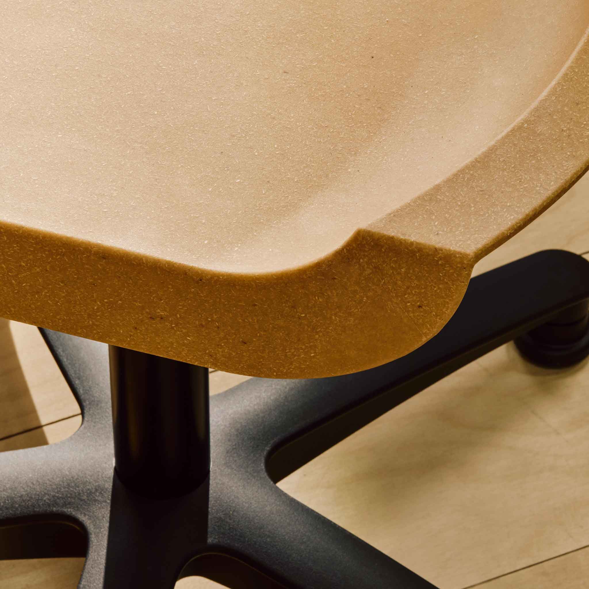Sitzschale: 50 % Polypropylen, 50 % Holz aus zertifizierten Quellen