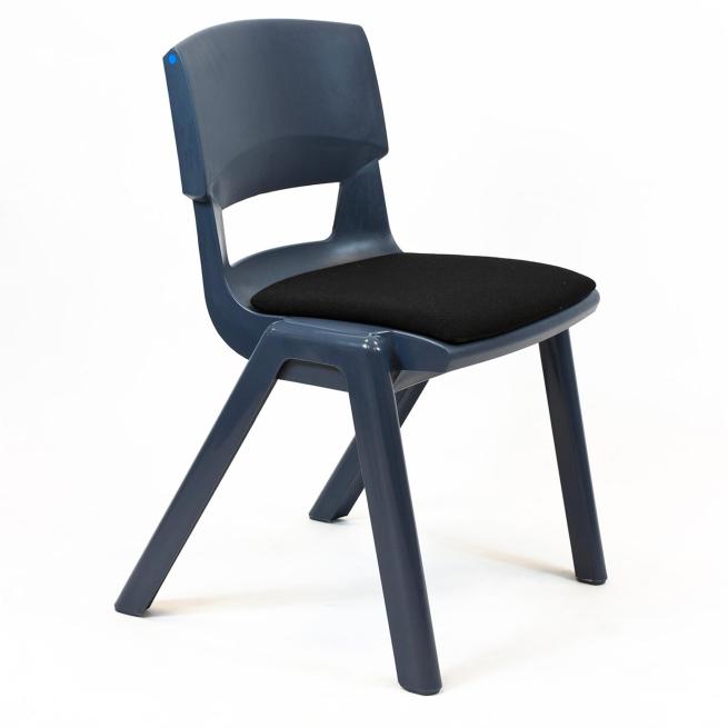Der Stuhl ist mit einem bequemen Sitzpolster ausgestattet. Die Polsterauflage aus Schaumstoff mit Stoffbezug in Anthrazit ist auf einer stabilen Kunststoffunterlage montiert, die fest mit dem Stuhl verschraubt wird. Der Bezug aus Stoffqualität ist schwer entflammbar.