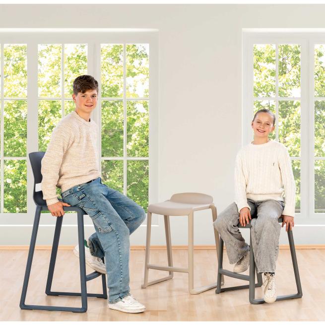 Der Postura+ One Piece Hocker ist die perfekte Wahl für Schulen, in denen flexible Sitzlösungen gefragt sind. Ob in den Naturwissenschaftsräumen, Kunst- und Technikwerkstätten oder an Steharbeitsplätzen in der Bibliothek – dieser Hocker sorgt für ergonomisches Sitzen bei höheren Arbeitsflächen. Sein schlankes Kufengestell mit rutschfesten Gleitern bietet Stabilität, während die breite Fußstütze eine gesunde Sitzhaltung unterstützt. Die schmutzabweisende, pflegeleichte Oberfläche macht ihn besonders langlebig. Der Hocker ist in drei Höhen und 10 Farben erhältlich und passt sich jeder Lernumgebung optimal an. Eine nachhaltige Wahl mit 20 Jahren Garantie.