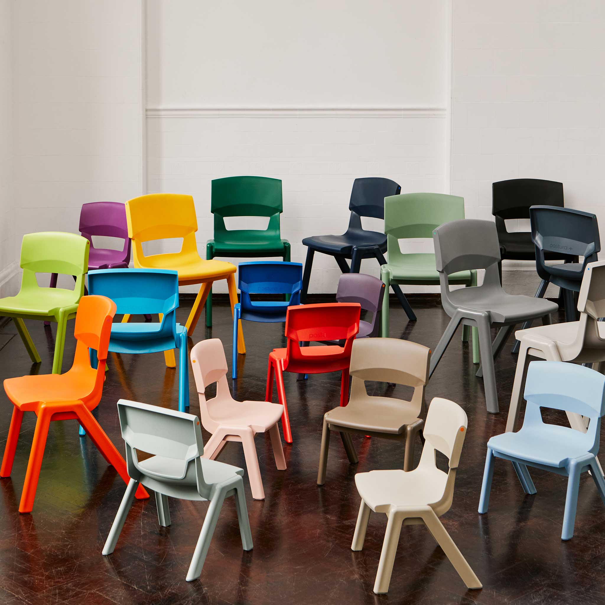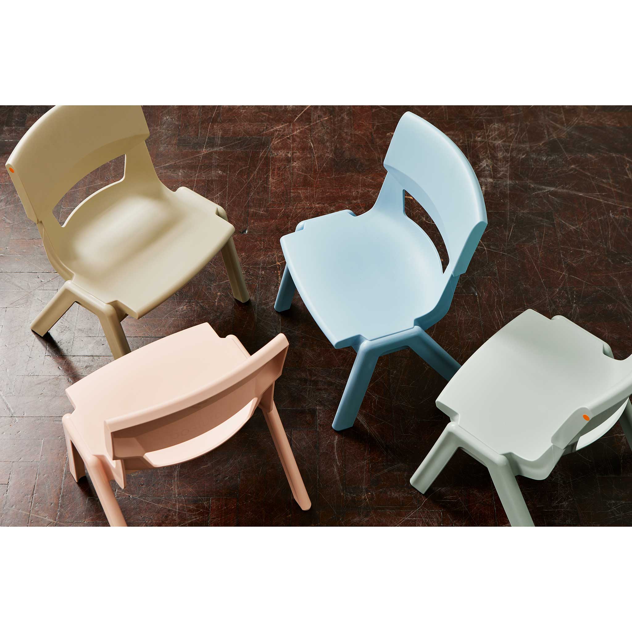 Ob Kindergarten, Schule, Fachraum, Mensa oder Außenbereich – auf dem Postura+ sitzen alle richtig und bequem. Postura+ Stühle kippeln nicht, sind leicht und nahezu unzerstörbar. Dabei sind die Stühle in leuchtenden Farben sowie trendigen Pastelltönen erhältlich, absolut pflegeleicht und hygienisch.