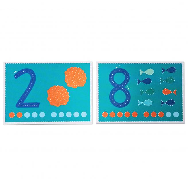 Farbenfrohes Zählvergnügen: Mit den Prickel-Zahlen lernen Kinder den Zahlenraum bis 10 kennen und wagen sich an erste kleine Aufgaben. Die Zehnerpaare wie 1 und 9 oder 4 und 6 sind farblich als zusammengehörend markiert und dienen so der Vorentlastung für späteres Rechnen. Das Set fördert Kreativität, Konzentration und Feinmotorik.
