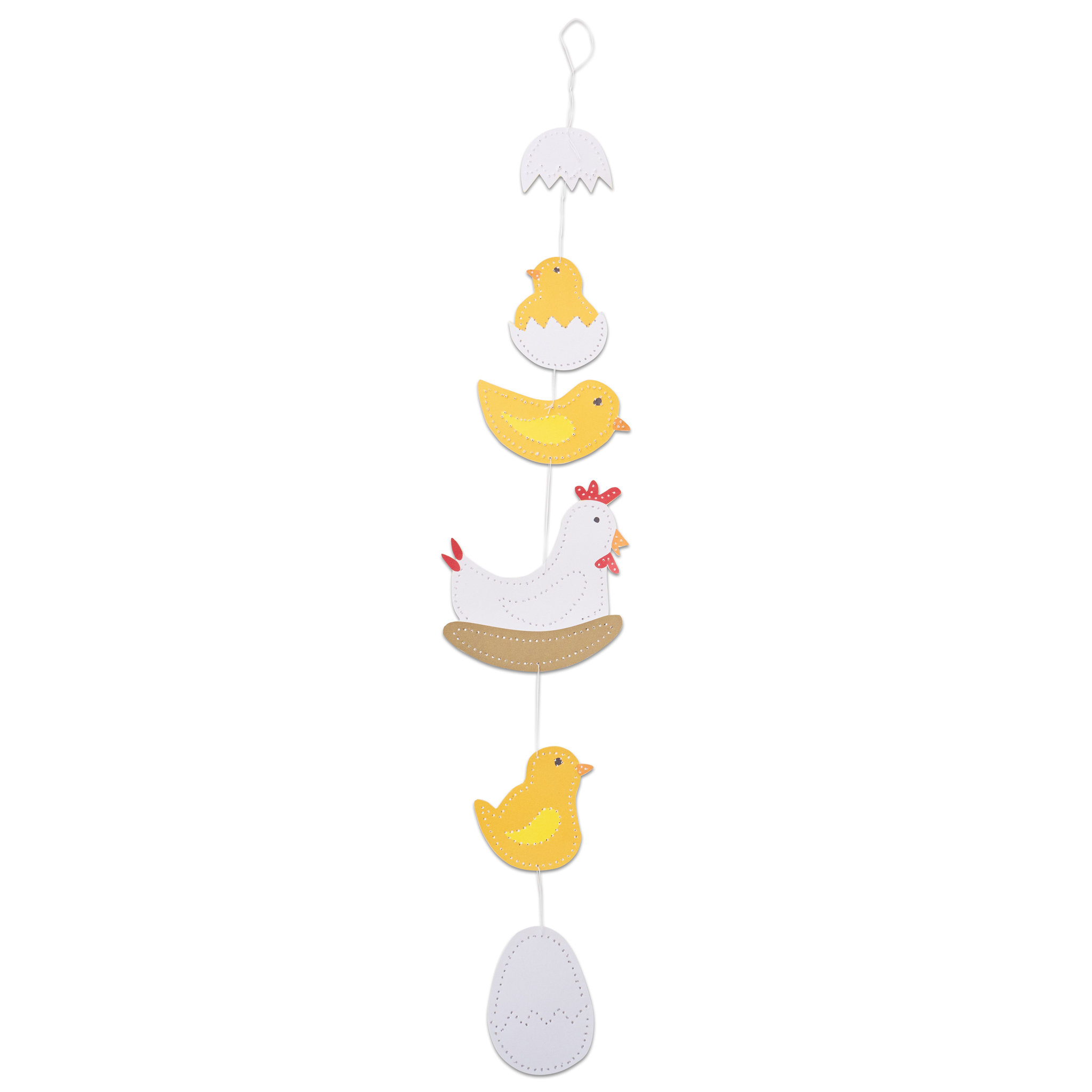 - Höhe größtes Motiv (Henne): 9 cm <br> Höhe kleinstes Motiv (Eierschale): 3 cm