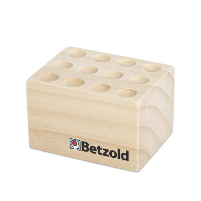 Sichere Ordnung halten Sie und Ihre Kinder mit dem Prickelnadelhalter aus Holz. In den vorgebohrten Löchern finden bis zu 12 Prickelnadeln sicheren Halt.