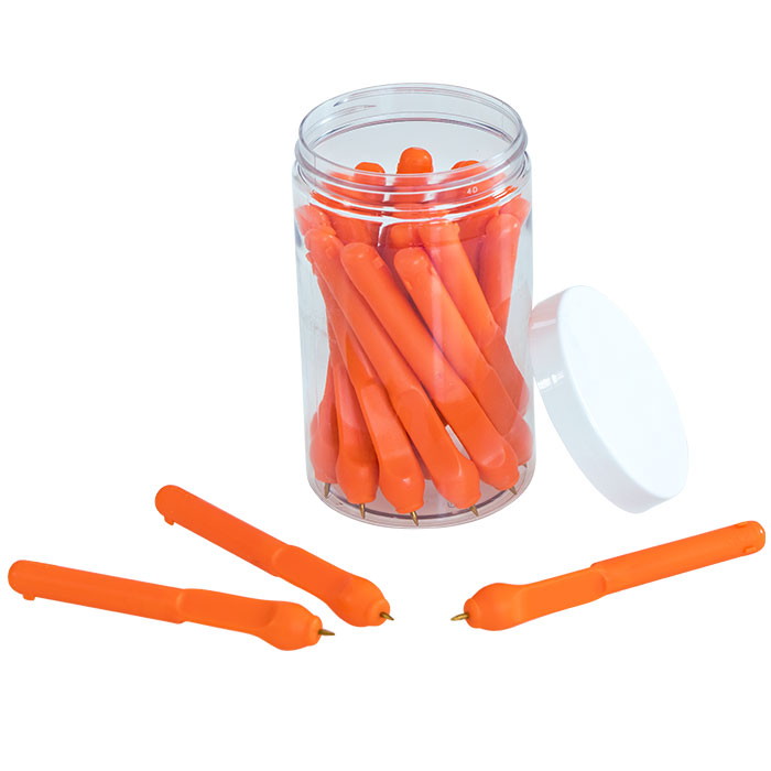 Ob zum Werken oder zum Trainieren der Schreibfähigkeit – die Prickelstifte mit ergonomischem Griff fördern die kindliche Sensomotorik. Die richtige Greifhaltung nehmen schon Vorschüler dank der speziellen Form der Prickelstifte ein. Für Links- und Rechtshänder geeignet. In der Kunststoffdose mit Schraubdeckel sind 20 Stück enthalten. Rostfreie Spitze.