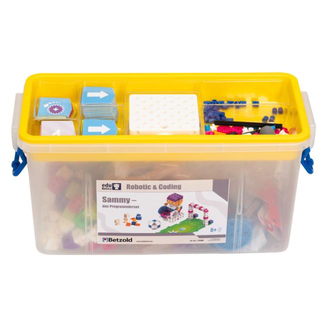 Sammy ist mit Sensoren, Motoren sowie Ton- und Lichteffekten ausgestattet und bereitet den Kindern viel Spaß. Im Set sind sechs verschiedene Handlungsstränge enthalten, jeder mit Modellbau- und Kodierungslektionen. Bis zu 38 verschiedene Modelle können mit den mitgelieferten Blöcken zusammengesetzt werden.