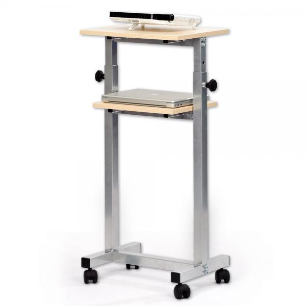 Auch dieser robuste Projektorwagen ist in der Höhe verstellbar. Er steht auf einem sehr robusten Stahlrohrgestell. Die 4 Rollen sorgen für optimale Mobilität. 2 der 4 Rollen sind feststellbar damit der Wagen sicher am Projektionsplatz steht.