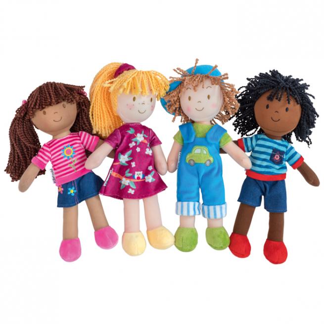Paulina, Lara, Silas und Pablo – mit den drolligen Puppen aus Stoff spielen und kuscheln Ihre Kinder besonders gern. Fest wattiert und somit schön griffig für Kinderhände. Einzeln oder im Set erhältlich.