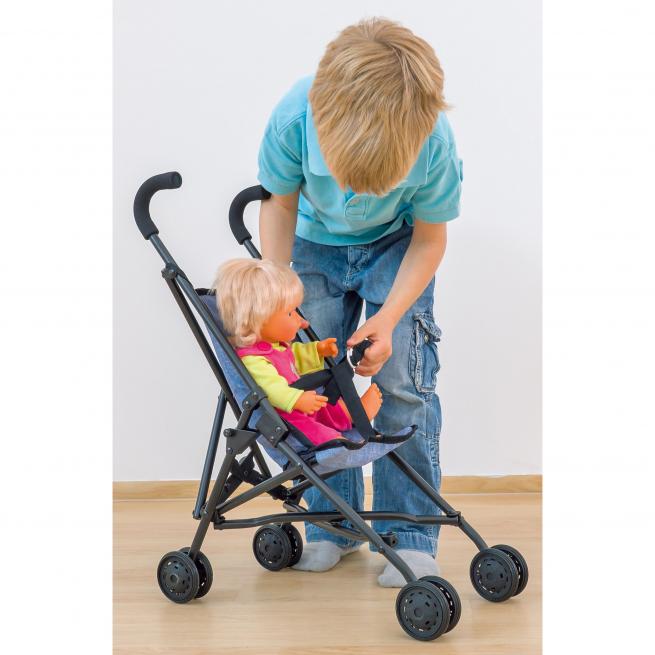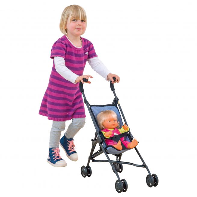 Ein Muss für alle Puppen-Eltern. Mit diesem schicken Puppenbuggy im Jeanslook mit Zwillingsrädern und Gurt für die Puppe gehen die Kinder mit ihren kleinen Lieblingen gerne spazieren, wie bei einem echten Buggy. So ist das Rollenspiel besonders authentisch. Der Buggy ist geeignet für Puppen bis 52 cm.