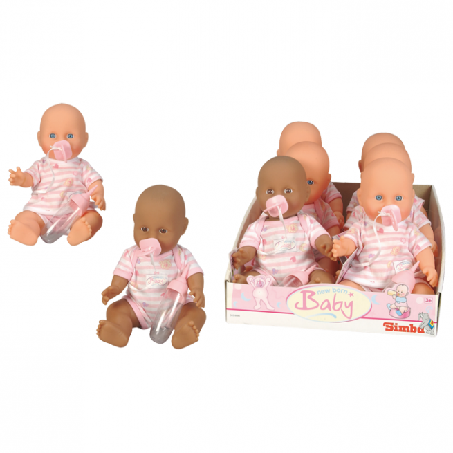 Puppen im 6er-Set warten schon gespannt auf ihre Puppenmamas. Die ca. 30 cm großen Vinylbabys trinken und nässen. 5x hellhäutig, 1x dunkelhäutig. Inklusive Strampler, Schnuller und Fläschchen.