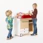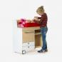 Der Puppen-Wickeltisch darf beim beliebten Rollenspielklassiker »Mutter-Vater-Kind« natürlich nicht fehlen. Auf der breiten Fläche haben Puppeneltern genügend Platz zum Wickeln und Anziehen ihrer Lieblinge. Im Unterschrank und den Schubladen ist viel Stauraum für Windeln, Wickelutensilien und Kleidung.