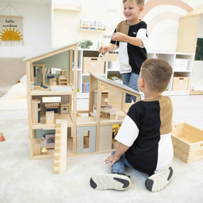 Für welche Variante Sie sich auch entscheiden, das Puppenhaus motiviert Kinder zu immer neuen Rollenspielsituationen, in denen sie beispielsweise ihren Alltag nachspielen oder zu Haushalts- bzw. Einrichtungsprofis werden. Hier ergeben sich immer neue Gesprächs- und Spielgelegenheiten, was ideal ist, um Teamwork sowie soziale Kompetenzen zu stärken.