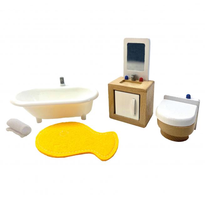 1 Bad: 1 Wanne, 1 WC, 1 Handtuch, 1 Waschtisch, 1 Teppich