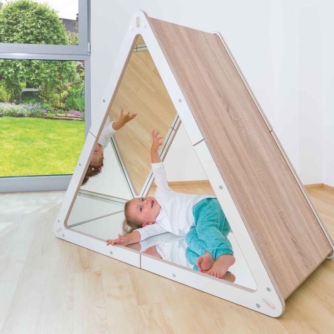 Ist das Zauberei? So haben Ihre Kleinen sich noch nie gesehen – von hinten, von unten, spiegelverkehrt, von allen Seiten. Staunend beobachtet das Kind seine Bewegungen aus verschiedenen Blickwinkeln und kann sich gar nicht sattsehen. Und nicht nur das Kind, alles was sich im Pyramidenspiegel befindet, erscheint wieder und wieder gespiegelt, bis ins Unendliche. Ein absolut faszinierendes Erlebnis für kleine und große Kinder. Alle Spiegelseiten sind mit bruchsicheren Spiegelflächen aus Sicherheitsglas ausgestattet. Zur einfachen Selbstmontage.
