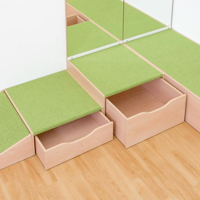 Quadrat mit Rollkasten, Podeste für den Kindergarten