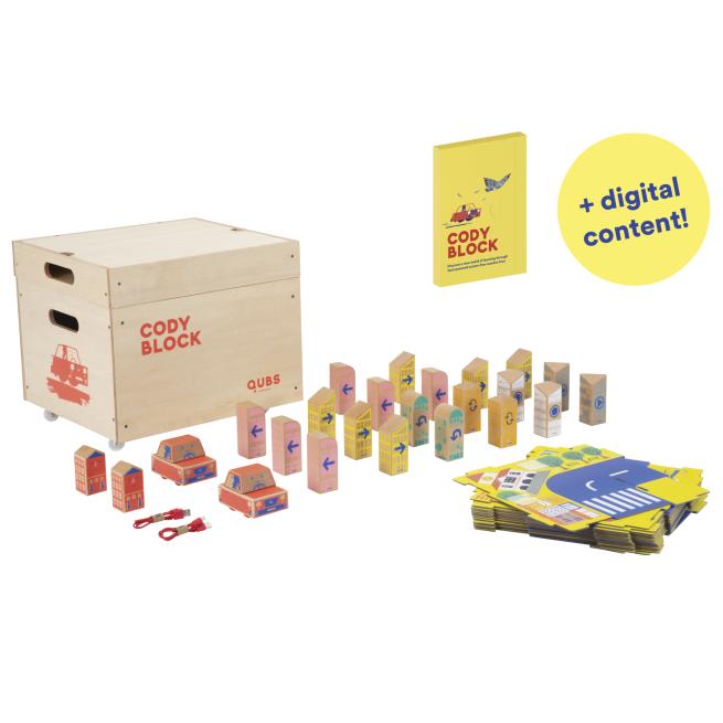 Das umfangreiche QUBS Cody Block Education-Set ist für Kinder ab 4 Jahren in Kindergarten und Grundschule konzipiert. Es bietet die volle Bandbreite an Cody-Block-Holzbauteilen und macht die Grundlagen des Programmierens kindgerecht verständlich. Die angehenden Coding-Profis lernen spielerisch, lebensnah und ohne Bildschirm oder andere Zusatzgeräte, wie Programmierbefehle wirken oder wie sie ganze Befehlsketten aneinanderreihen.