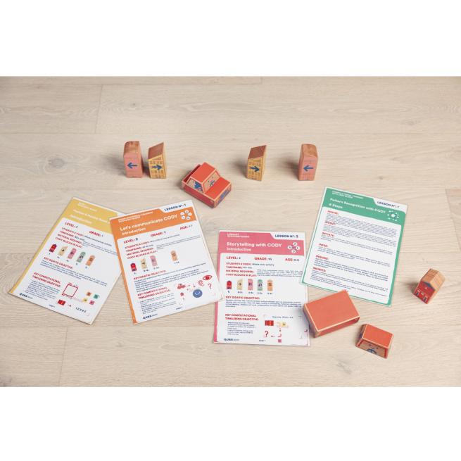 Das Cody-Block-Education-Set vermittelt die volle Bandbreite der Klötzchenwelt von Cody. Dabei warten für Kinder unterschiedlicher Altersgruppen und Lernstände spannende Herausforderungen. Kinder in KiTa und Kindergarten durchdringen hierbei sowohl das grundlegende Konzept von einzelnen Programmierbefehlen und ganzen Befehlsketten als auch kausale Zusammenhänge. Durch den intensiven Umgang mit dem Spielmaterial, darunter auch das vielfach schnell-spontane Umordnen der Holzblöcke, verbessern sie zugleich Fingerfertigkeit, Reaktionsgeschwindigkeit sowie visuelles und kognitives Aufnahmevermögen.