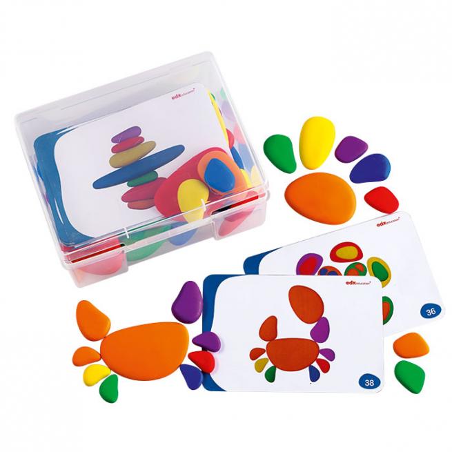 Durch Konzentration und Beobachtungsgabe zum Zählen und Rechnen. Die 36 Kieselsteine in unterschiedlichen Formen und tollen Farben sortieren und legen Ihre Kinder entweder ganz nach Lust und Laune oder sie orientieren sich an den 20 Vorlegekarten. So entsteht ein erstes Bild von Mengen und der Zusammensetzung von Zahlen. Die Kieselsteine greifen sie dank gummierter Oberfläche gut und stapeln sie auch einfach. In stabiler Kunststoffbox.