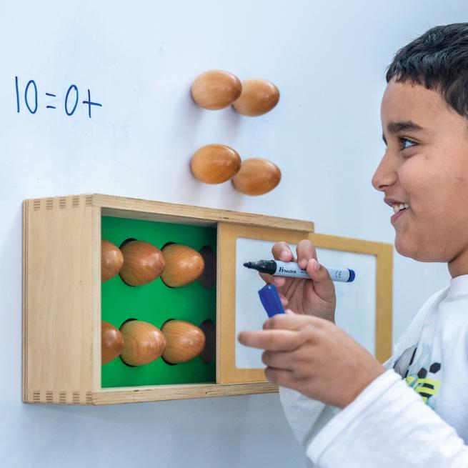 Den Zahlenraum bis 10 und erste einfache Additionen sowie Subtraktionen entdecken Ihre Kinder mithilfe der Eierbox. Die 10 unzerbrechlichen Eier haften magnetisch in der Box. Auf dem Whiteboard-Deckel notieren die SuS Aufgaben und Ergebnisse. Ab 5 Jahren.