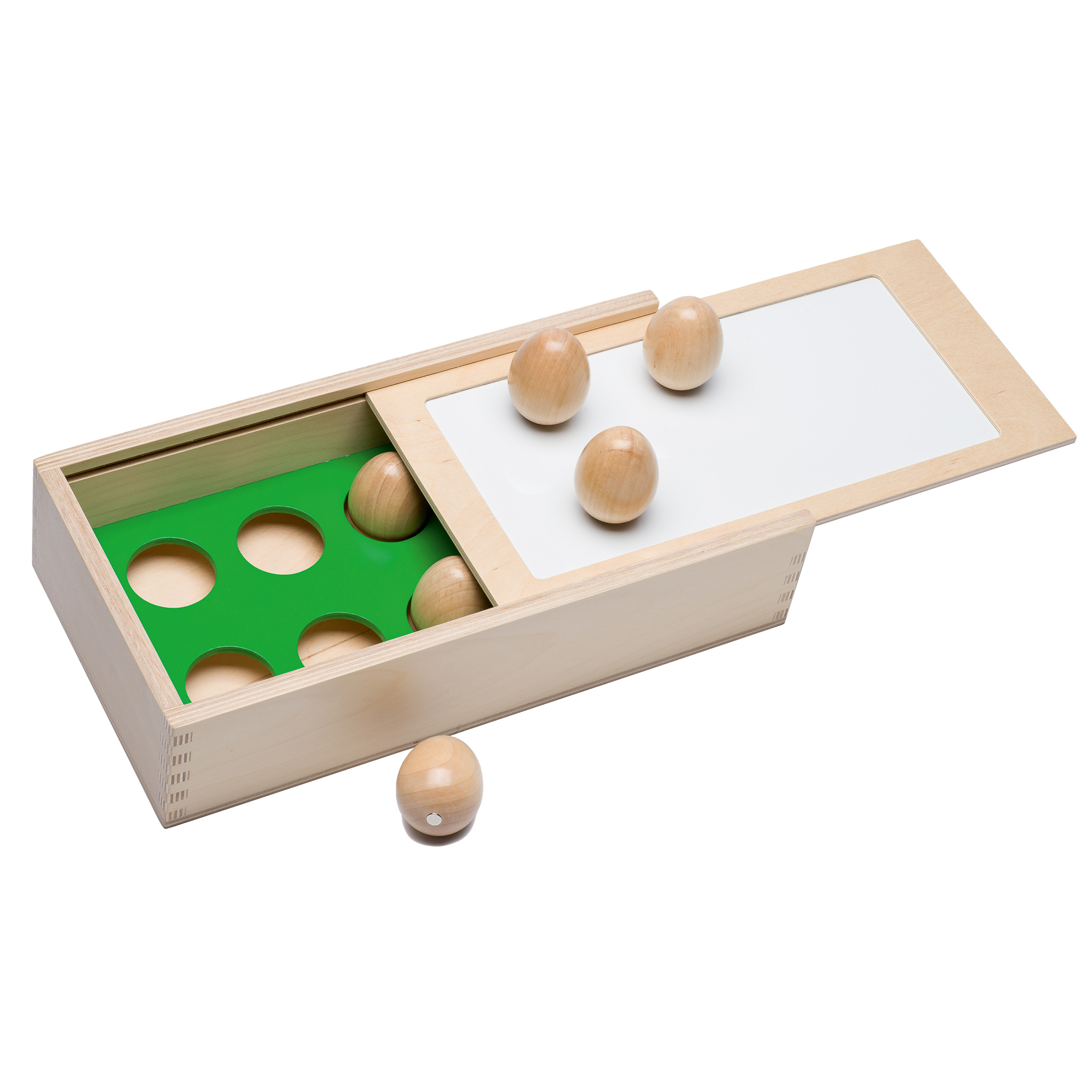 1 Holz-Eierbox mit Magnet und Whiteboard im Deckel10 Holzeier mit Magneten
