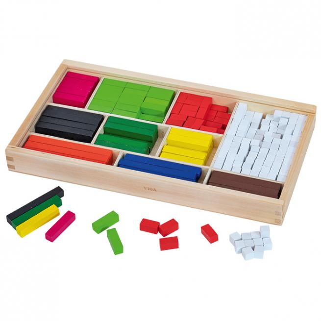 Ob Gruppenarbeit oder allein – die farbenfrohen Rechen-Stäbchen aus Holz vermitteln Kindern grundlegende Mathe-Kenntnisse wie Zählen, Vergleichen oder Sortieren. Bekanntes aus den Bereichen Addition, Subtraktion, Multiplikation, Division und Geometrie setzen Ihre Schüler mit den Stäbchen anschaulich um. Jede Farbe entspricht einer anderen Länge, wobei die kürzesten 1 cm messen und die längsten 10 cm. Praktische Aufbewahrungsbox mit transparentem Deckel.