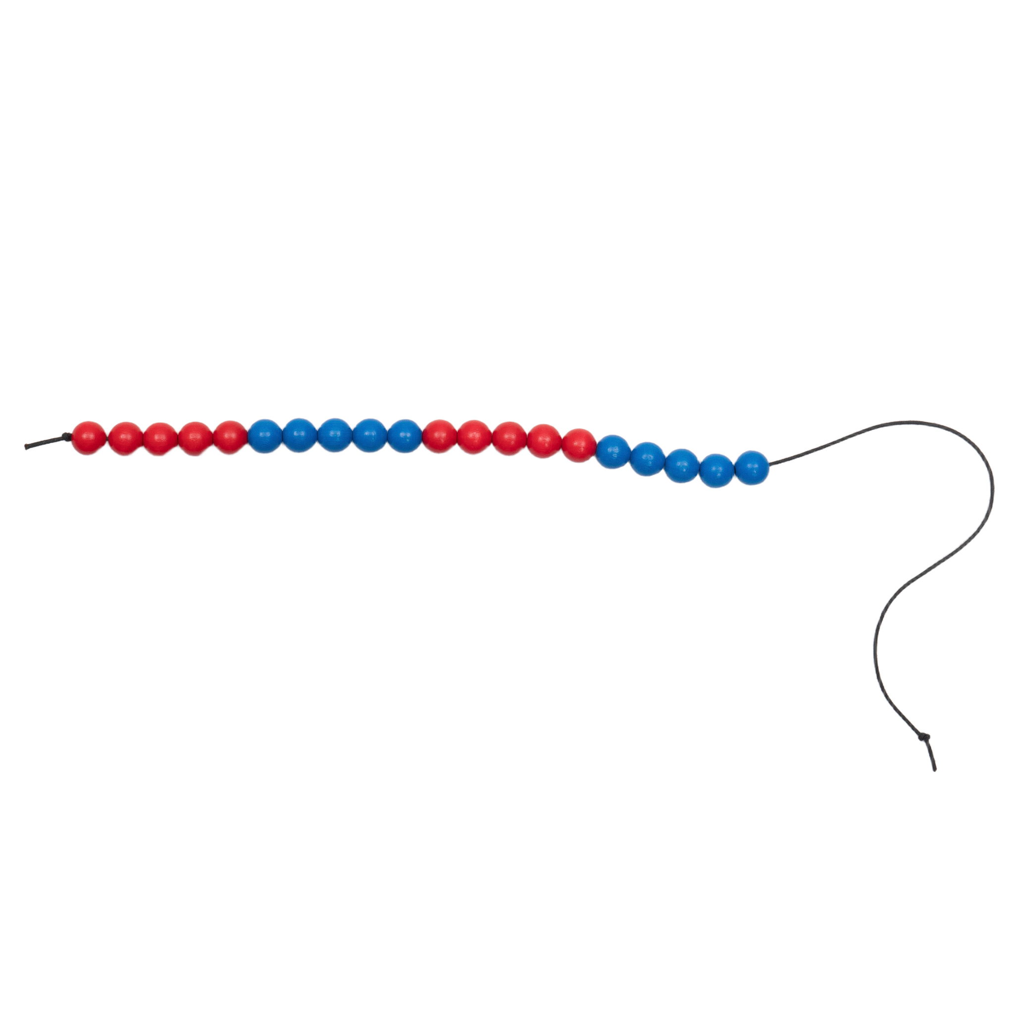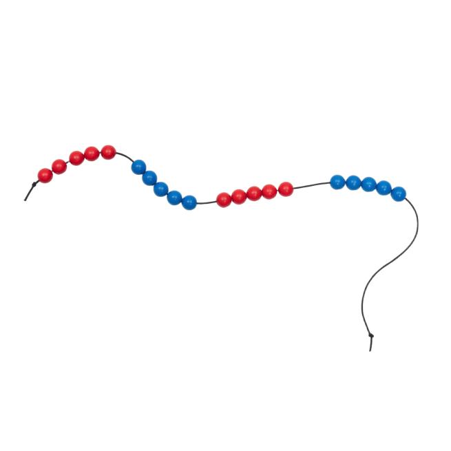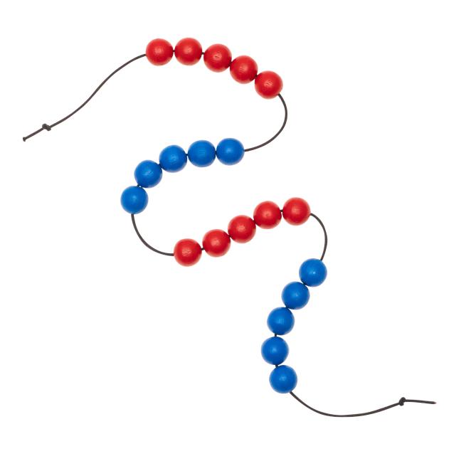 Die Rechenkette für den Zahlenraum bis 20 macht Mengen und Rechenschritte direkt sichtbar. An der 65 cm langen, reißfesten Kordel sitzen 20 farbige, polierte Holzkugeln mit 15 mm Durchmesser. Die Gliederung in Fünferschritten gibt Kindern Orientierung und unterstützt das Addieren und Subtrahieren bis 20. Gleichzeitig trainiert das Verschieben der Kugeln die Feinmotorik.