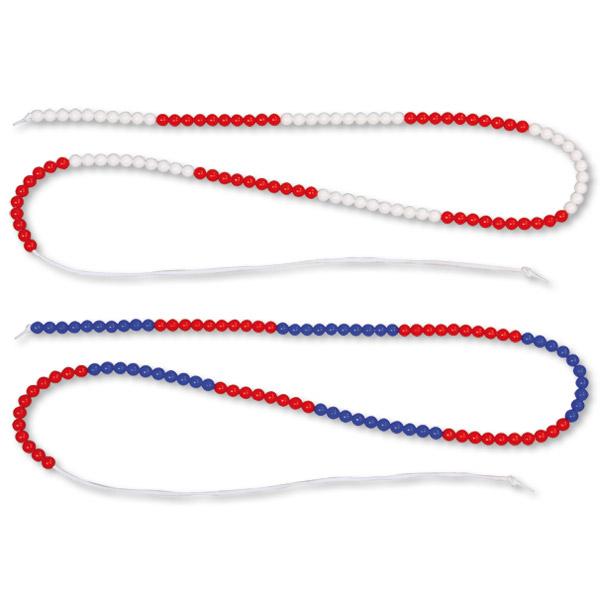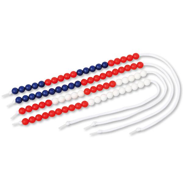 Je 5 blaue und 5 rote Perlen im Wechsel