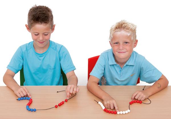 Das Besondere der Rechenketten: Verschobene Perlen bleiben an ihrem Platz und die anderen Perlen rutschen nicht nach.