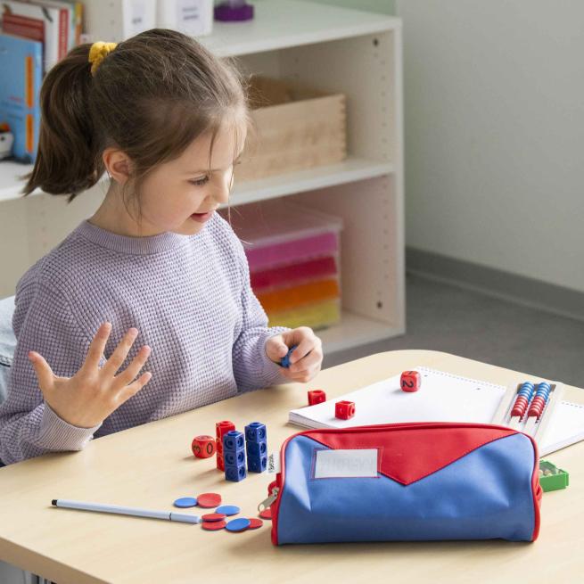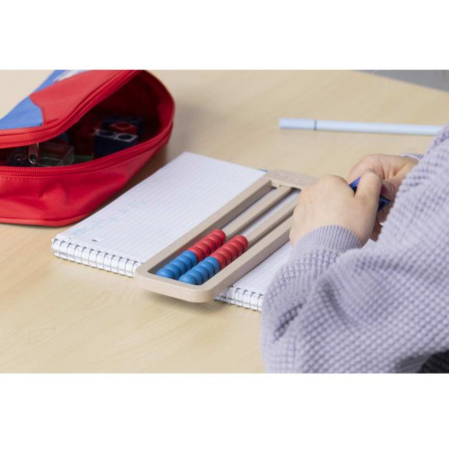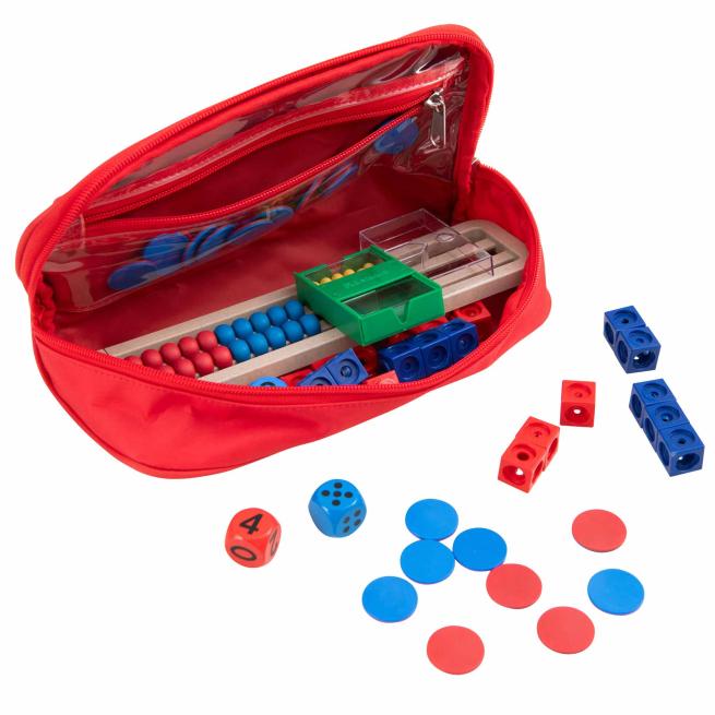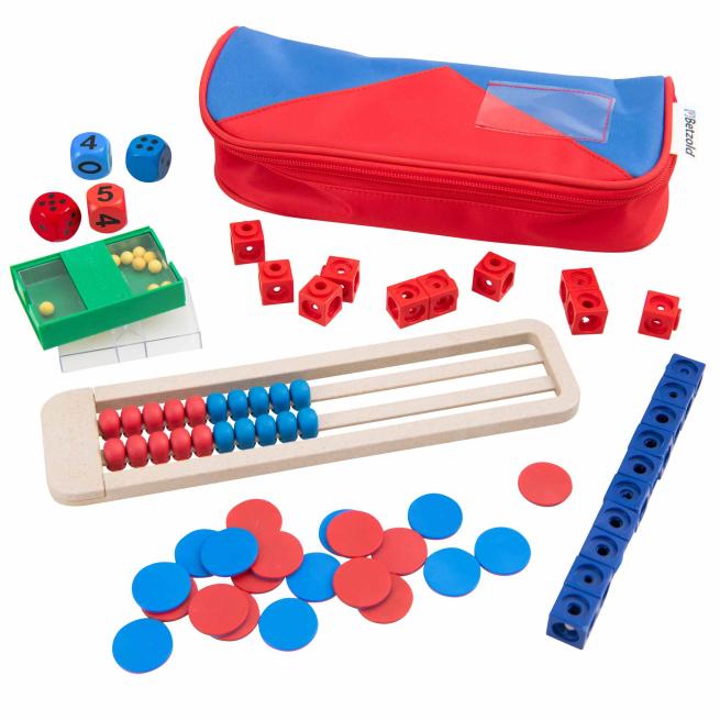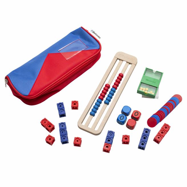 1 Mäppchen zum Selbstbefüllen1 Rechenrahmen aus treeNside-Material (mit 20 Rechenkugeln, je 10 in Rot und Blau)