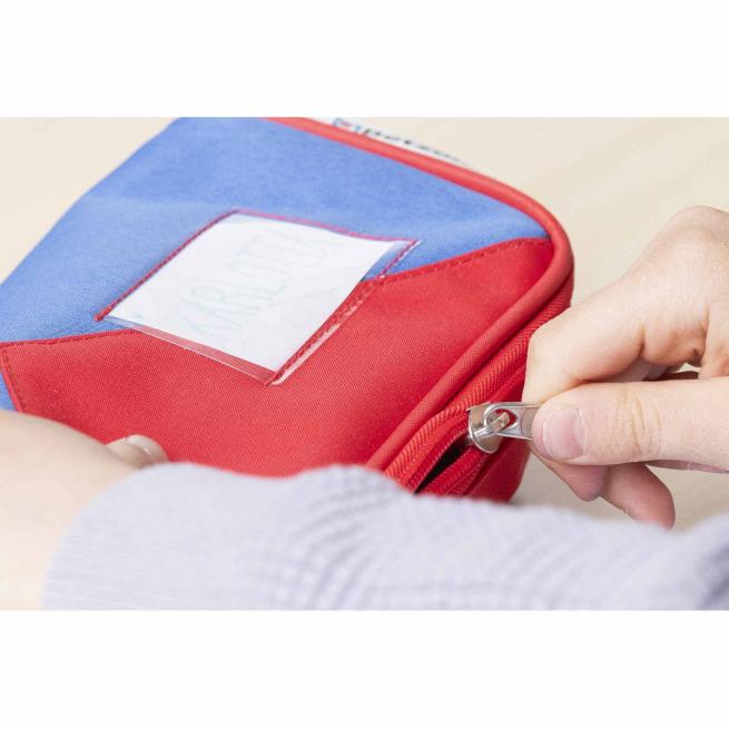 Hinweis: aufgrund der Farbe des Stoffes kann es zur Verfärbung der Folie auf dem Mäppchen kommen.