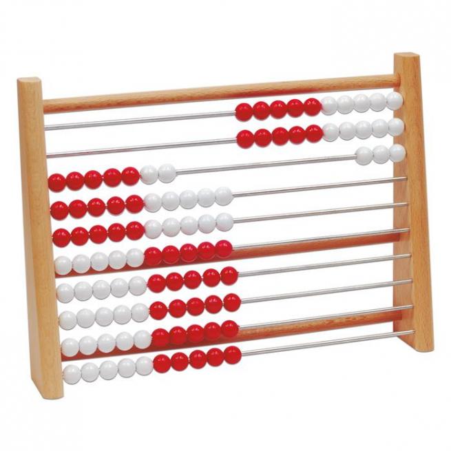 Rechenrahmen 1–100 mit roten und weißen Kugeln