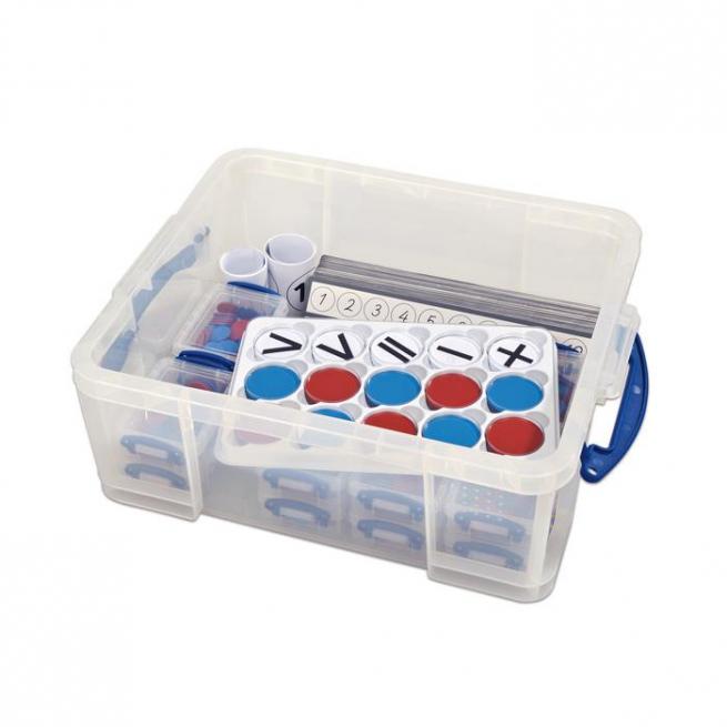 Wendeplättchen und Rechenleisten – das Set bietet Schülern der 1. Klasse alles, um schnell rechnen zu lernen. Mit den großen magnetischen Plättchen zeigen Sie Ihren Schülern den Rechenweg. Die Kinder sehen das 20er-Zahlenfeld vor sich und üben dann mit den kleinen Wendeplättchen. Für die ordentliche Aufbewahrung sorgt die Kunststoffbox mit Klemmdeckel.