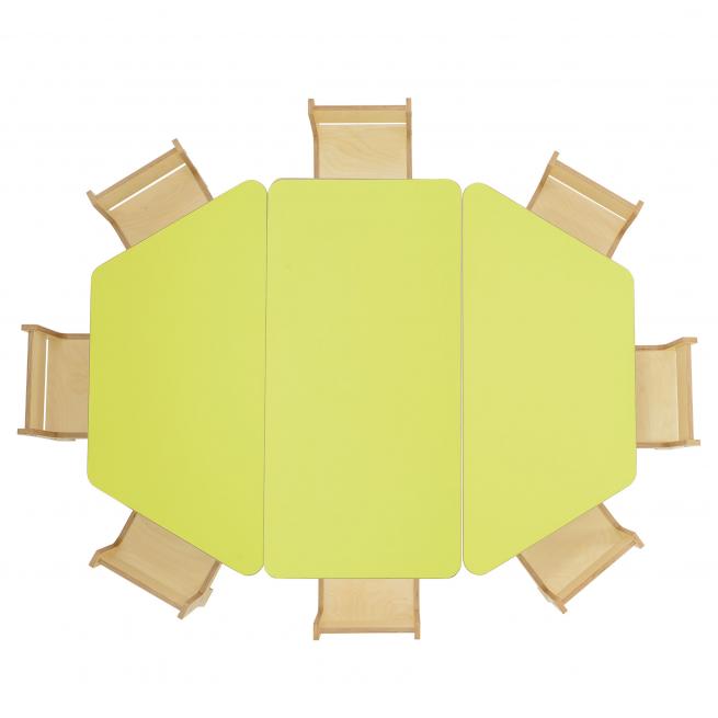 Speziell für Kinder U3 konzipiert. Diese Tischserie aus Birkenholz zeichnet sich durch ihre stark abgerundeten Ecken aus. Die Kleinen sind vor Stoßverletzungen geschützt und essen, sitzen oder spielen gern auch mal am Tisch. Die Tischplatte aus Birke-Multiplex ist dank beidseitiger Beschichtung besonders kratzfest. Stabilen Halt haben die Tische dank der Beine aus Birken-Massivholz. Zudem schützen die integrierten Gleiter Gehör und Boden. Nutzen Sie die wendbaren Gleiter je nach Boden entweder mit der Filz- oder Kunststoffseite. Kombinieren Sie die Tische nach Lust und Laune – die hellen Tischplattenfarben geben Ihrer Einrichtung einen frischen Look.