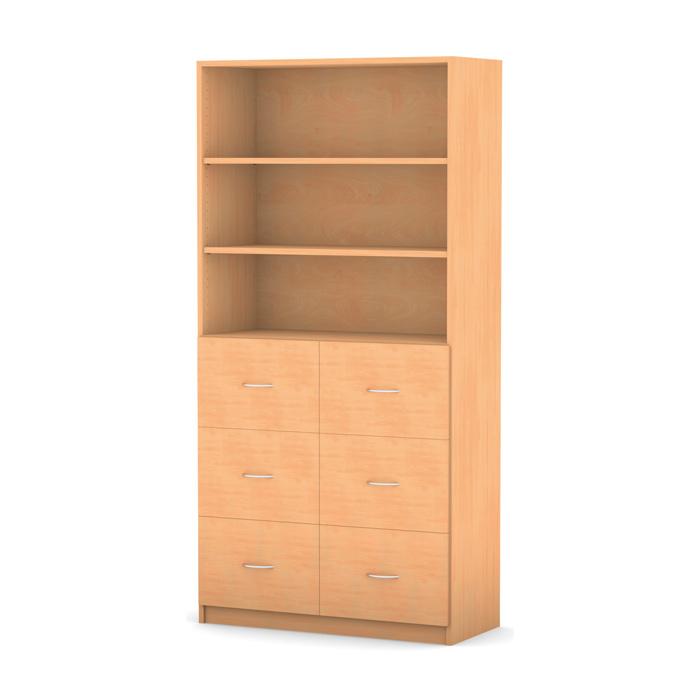 Regal ohne Mittelwand, 6 hohe Holzschubladen mit Griffen, mit 2 verstellbaren Böden