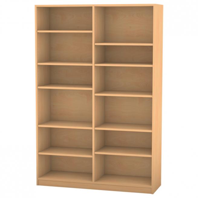 Praktisches Regal mit sehr stabilem Korpus und Sockel. Die Mittelwand verringert die Fachbreite, dadurch sind die Böden belastbarer.