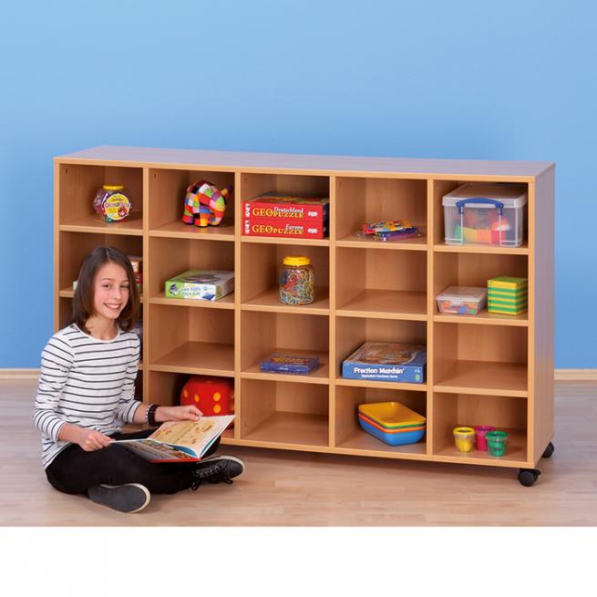 Ideal, wenn jeder Schüler ein eigenes Fach bekommen soll. Jedes Fach ist 30 cm breit und 36,5 cm tief. Somit passen DIN A4 Bücher quer oder tief in ein Fach. Die kompakten Böden sind sehr belastbar.
