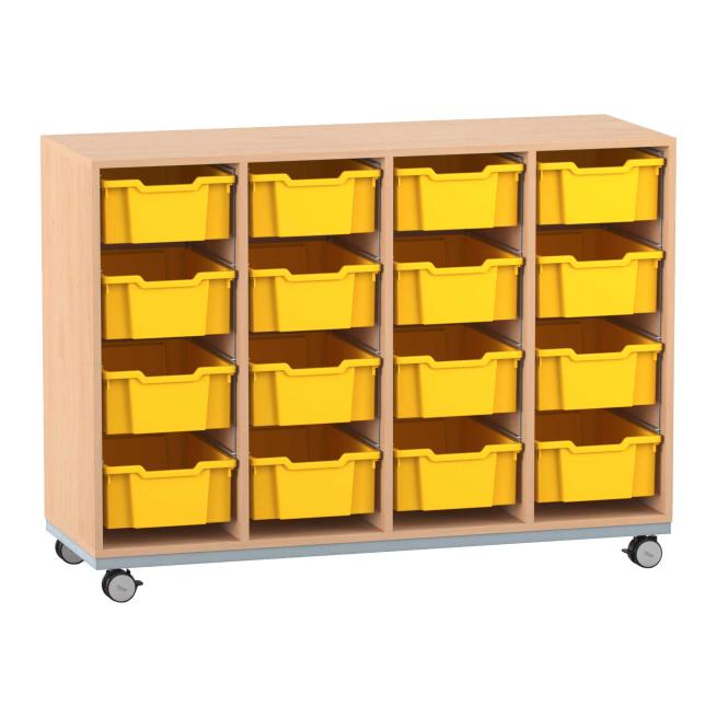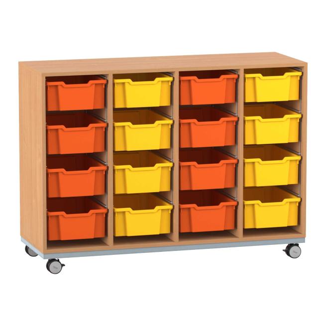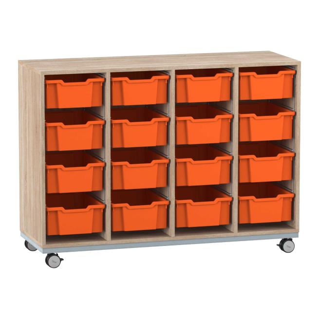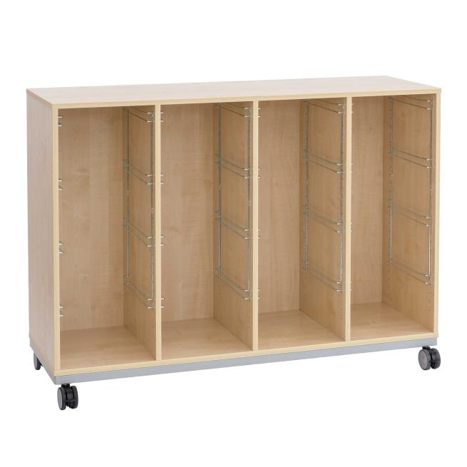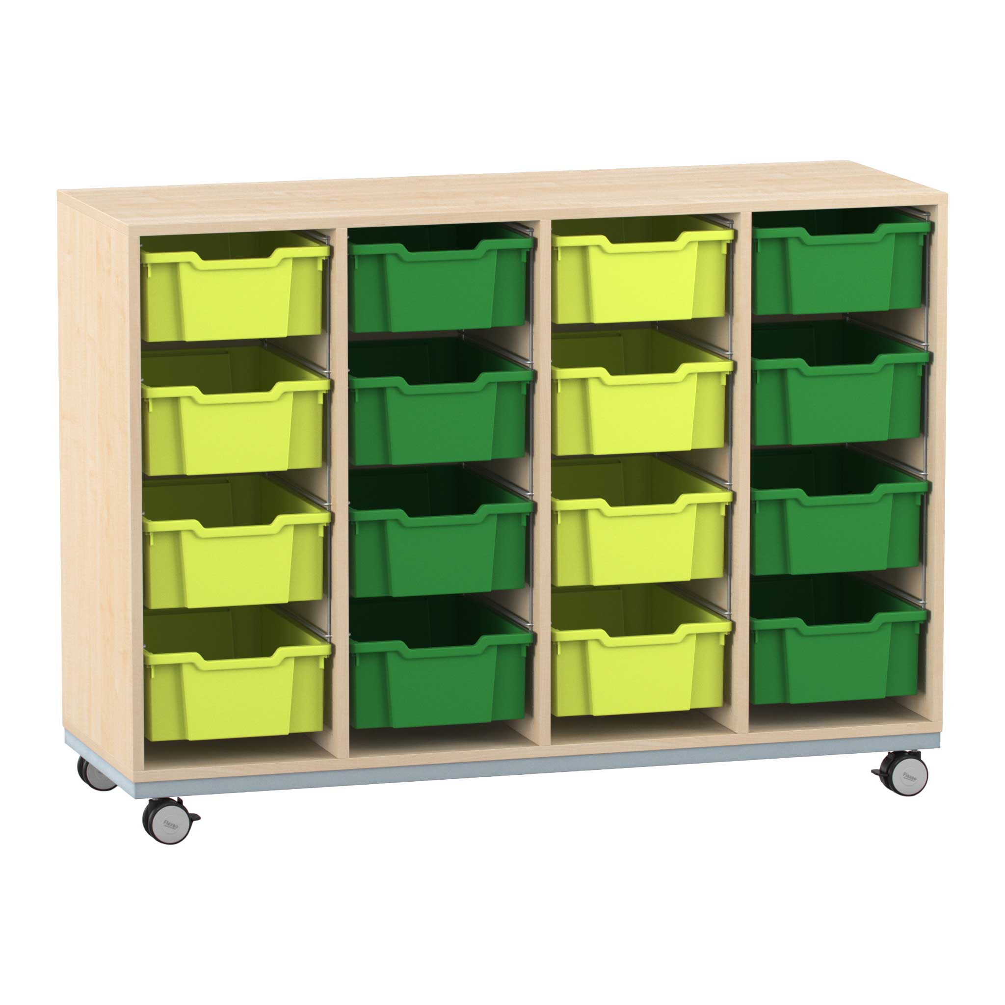 Unverwüstliche Ordnung. Besonders robust, langlebig und dabei auch noch mobil präsentiert sich das Flexeo® PRO Regal mit Stahlrahmen. In 4 Reihen und 16 hohen Boxen verstauen Sie Ihre Unterrichtsmaterialien, Büroutensilien und Dokumente bestens. Jeweils 2 der 4 Lastrollen sind feststellbar, damit die Regale standfest sind. Wählen Sie Breite, Dekor und die Farbe der Materialboxen ganz nach Geschmack.