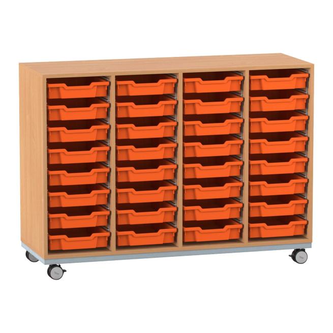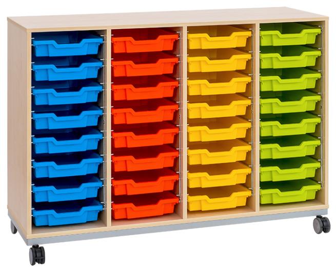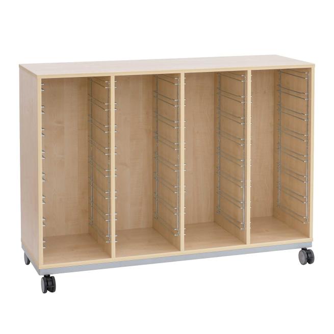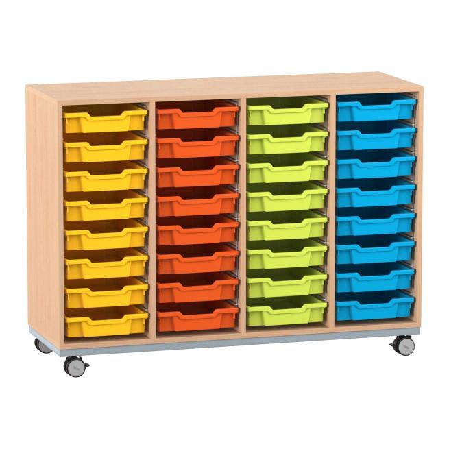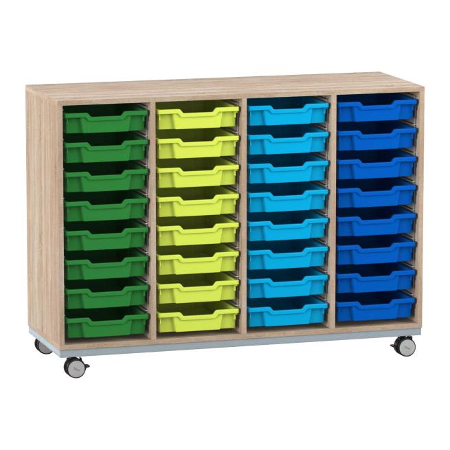 Unverwüstliche Ordnung. Besonders robust, langlebig und dabei auch noch mobil präsentiert sich das Flexeo® PRO Regal mit Stahlrahmen. In 4 Reihen und 32 flachen Boxen verstauen Sie Ihre Unterrichtsmaterialien, Büroutensilien und Dokumente bestens. Jeweils 2 der 4 Lastrollen sind feststellbar, damit die Regale standfest sind. Wählen Sie Breite, Dekor und die Farbe der Materialboxen ganz nach Geschmack.